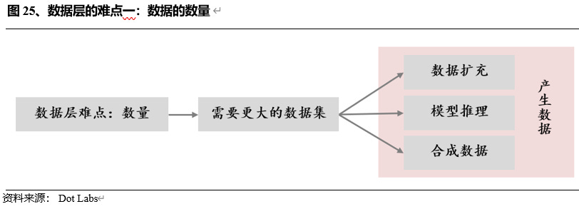 前文提到,训练大模型对数据的需求量正在不断膨胀。图像和视频数据仅仅可以维持到2024年,数据稀缺性可能成为训练模型时的一项潜在障碍。为了有效应对这一发展难题,目前在数据层面有如下主要的发展方向: