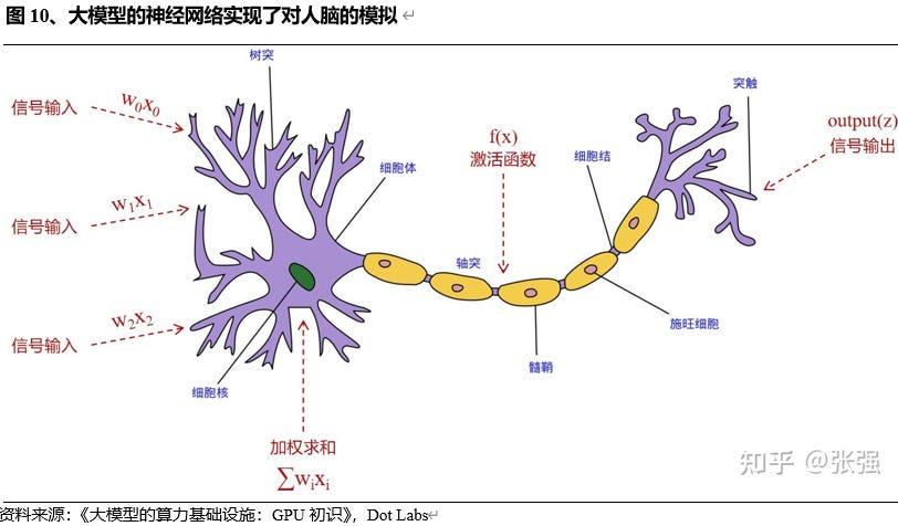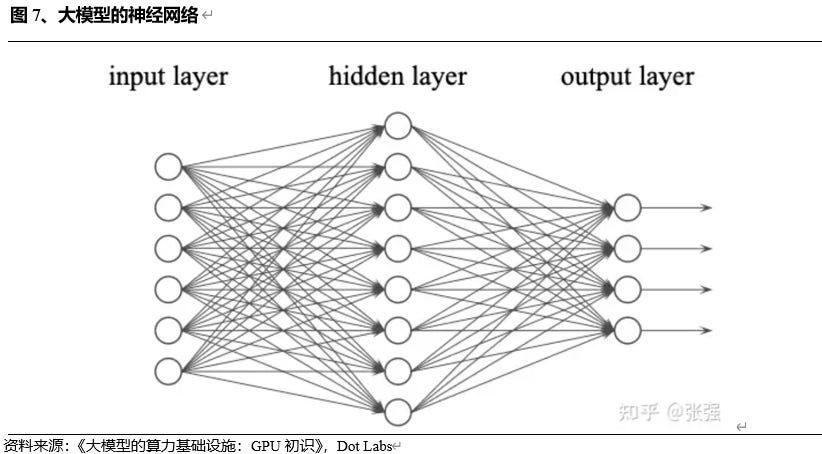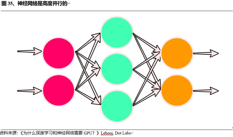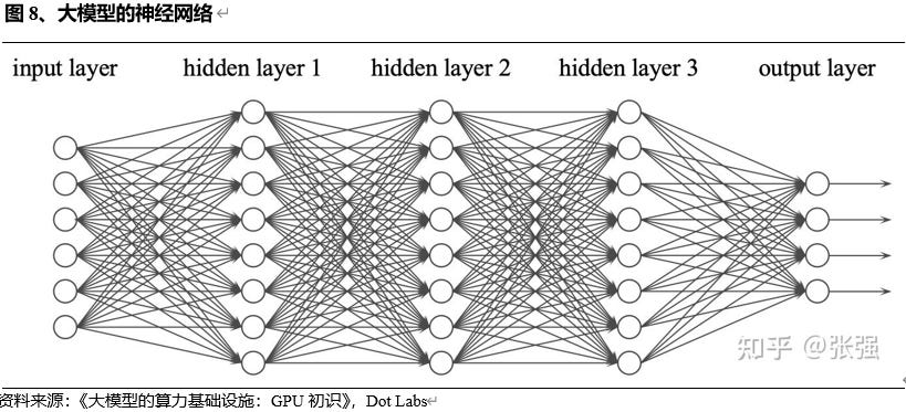 主流大模型所基于的 Transformer 是一种深度神经网络架构。而神经网络可以看作一个包含了巨大规模参数的大函数。在需要大量算力的训练和推理步骤中,这个大函数最主要的就是进行大量的矩阵运算。如进行标量乘法、矩阵加法、矩阵乘法、矩阵转置等。在Transformer架构下,运行神经网络这样一个大函数可以被分解成互不干涉、各自独立的小步骤。以矩阵乘法运算为例,两个矩阵的每一个行列相乘,都是互不相干,可独立进行的计算过程,需要通过并行计算进而实现有效处理。