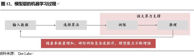 模型层以高研发壁垒以及高运行成本为主要特点,一方面从数据基础和训练成本来看,模型层的研发均需要体量较大的数据来完成,另一方面从运行成本来看,模型层的运行需要较强算力的支持。