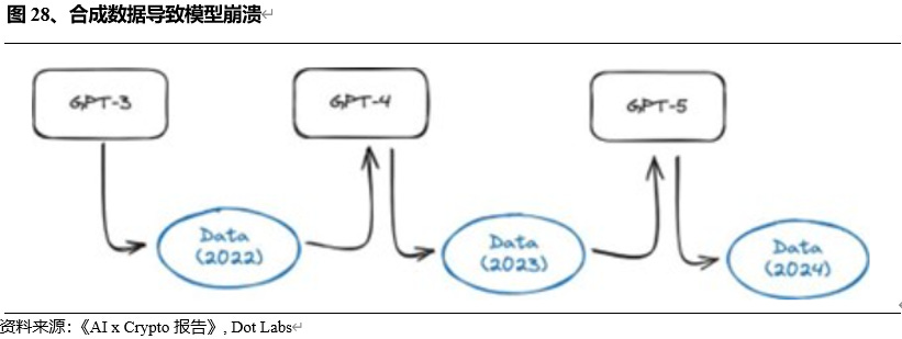 找出数据集中的合成数据并剔除。这需要追溯这些数据的最初来源。围绕数据出处(追踪数据来源)的解决方案存在重大机遇。