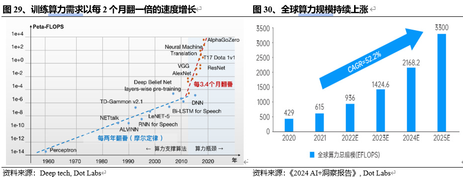 2018年以后,模型训练所需要的算力需求正在以2个月翻一倍的速度增长。