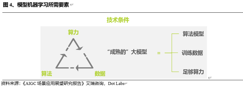 大模型的机器学习主要由算法、算力和数据这三个要素构成: