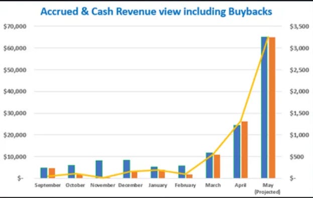 项目收入快速增长,目前PTA价格上涨了33%,前3月每收入翻一番,预计上半年收入增长500%。截至 5 月 1 日,收入超过了 4 月,并可能再次翻倍。